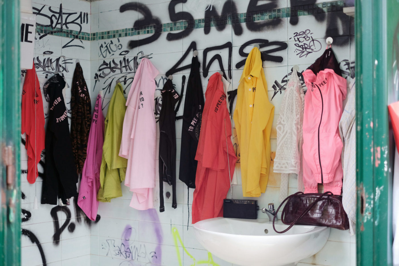 Avec Pretend it’s a toilet, Sara Leghissa interroge de manière concrète la représentation des corps dans l’espace public. Espace de socialisation queer et, en même temps, lieu d’application de la pensée binaire par excellence, les toilettes publiques peuvent-elles servir de prétexte pour interroger les dynamiques de pouvoir qui permettent ou empêchent de prendre position sur des règles implicites? Pourquoi certains corps semblent-ils être à la bonne place et de facto plus légitimes à dicter aux autres ce qu’iels doivent faire? Ce Kit de démarrage pour pisser librement est une invitation à se réunir autour de slogans percutants afin de court-circuiter ces tendances dominantes.